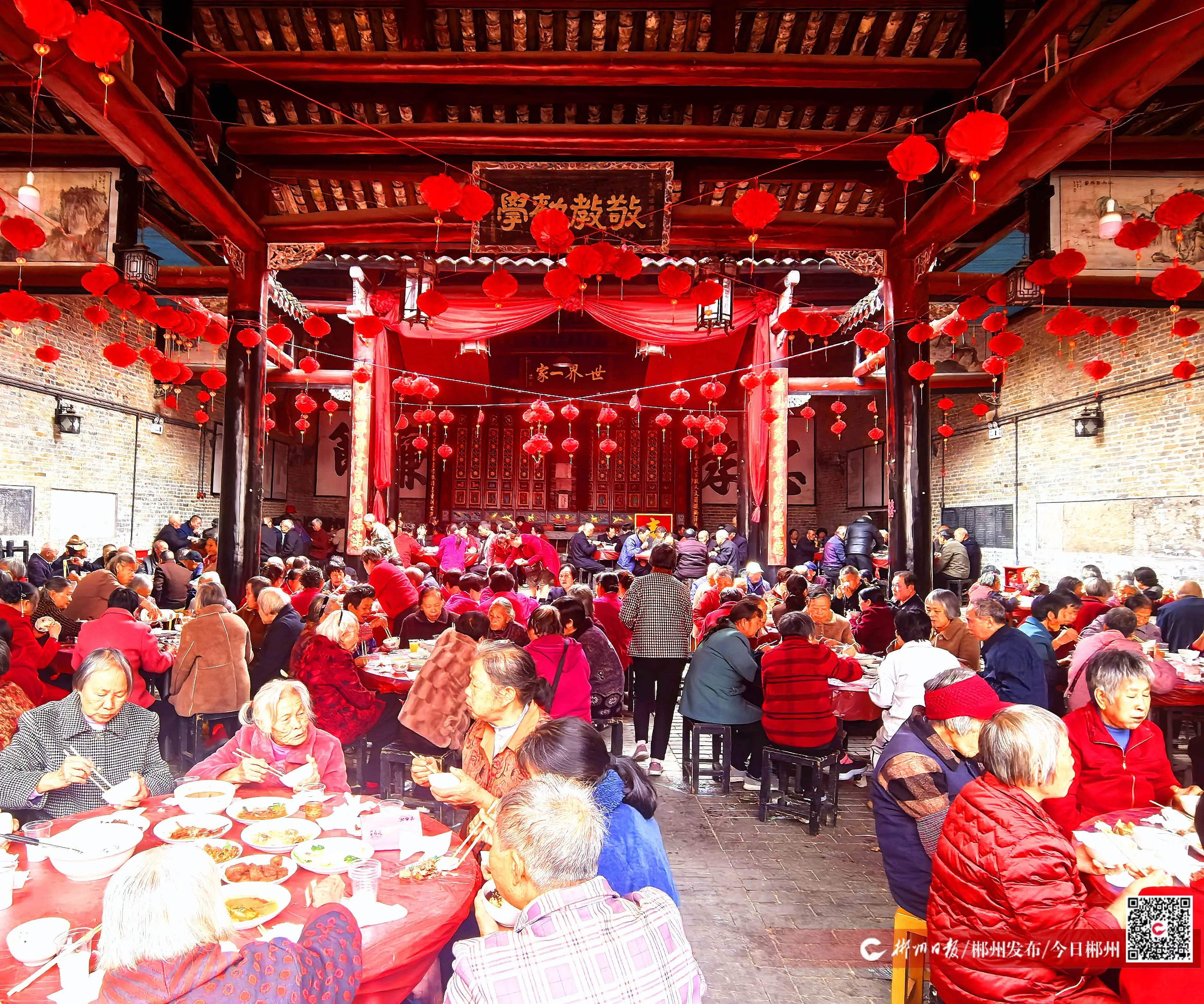 张灯结彩,敲锣打鼓。10月28日,位于汝城县千年古县景区内的卢阳镇津江村热闹非凡、其乐融融。全村500多名满了60岁的老人们欢聚一堂,共同观看腰鼓、歌舞、戏曲、乐器演奏等文化节目,有序列坐共进中餐,一起欢度重阳佳节,现场充满欢声笑语。